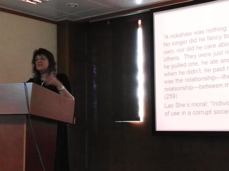 在将相关概念与术语界定清楚之后,Regenia Gagnier教授便举了四个方面的例子,来对这些概念进行进一步的解释与说明。首先,她举了19世纪著名的英国经济学家密尔(John Stuart Mill,1806-1873)的《论自由》(On Liberty,1859)一书在中国的译介的例子,就严复将其译为《群己权界论》(The Boundary between Self and Group)中所体现的关于个人与集体主义的文化思考进行了阐述,点出了文化翻译过程中意识形态与社会制度之间的相互交流与碰撞。其次,Gagnier教授举了老舍(1899-1966)《骆驼祥子》(Rickshaw Boy,1936-39)一书中所体现的异化情况,之后又利用史实向听众讲解了人力车夫在全球范围内自由化的过程。再次,Gagnier教授从自己研究主要领域——维多利亚时期的文本出发,援引了王尔德(Oscar Wilde,1854-1900)的散文《社会主义制度下人的灵魂》(“The Soul of Man under Socialism”,1891)中关于社会主义与个人主义相辅相成的关系的观点,并向大家介绍了法国作家纪德(André Gide,1869-1951)对王尔德这一观点的见解与补充,强调了“社会主义的个人主义者”(Socialist Individualists)与“民族主义的世界主义者”(Nationalist Internationalists)的概念。其后,Gagnier教授讲述了乌拉圭作家何塞·恩里克·罗多(José Enrique Rodó,1871-1917)的《爱丽儿》(Ariel,1900)一书中所体现的美国自由主义对外扩张中所体现的实利主义与不平等等方面的种种弊端,还从商品贸易及现代化的角度阐述了自由主义的时代背景与历史趋势,同时就拉美的地缘政治展开了论述,并就自由主义与新自由主义的优劣进行了一番探讨。最后,Gagnier教授还就文学研究者研究过程中开阔思路、突破学科界限等方面提出了自己建议。
