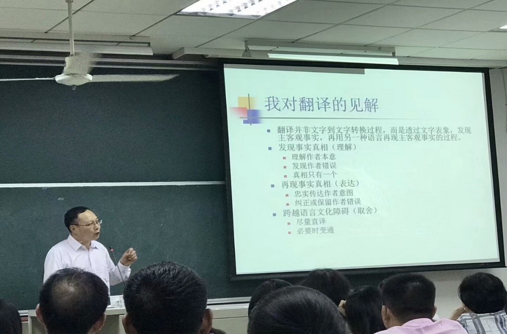2017年10月10日晚,北京外国语大学高级翻译学院副院长李长栓教授受外文学院邀请来到leyu乐鱼官方web站登录入口,乐鱼(中国),为学校师生以及一些翻译界人士带来了题为“翻译是发现和再现真相的过程”的讲座,陶友兰教授主持讲座并致欢迎辞。