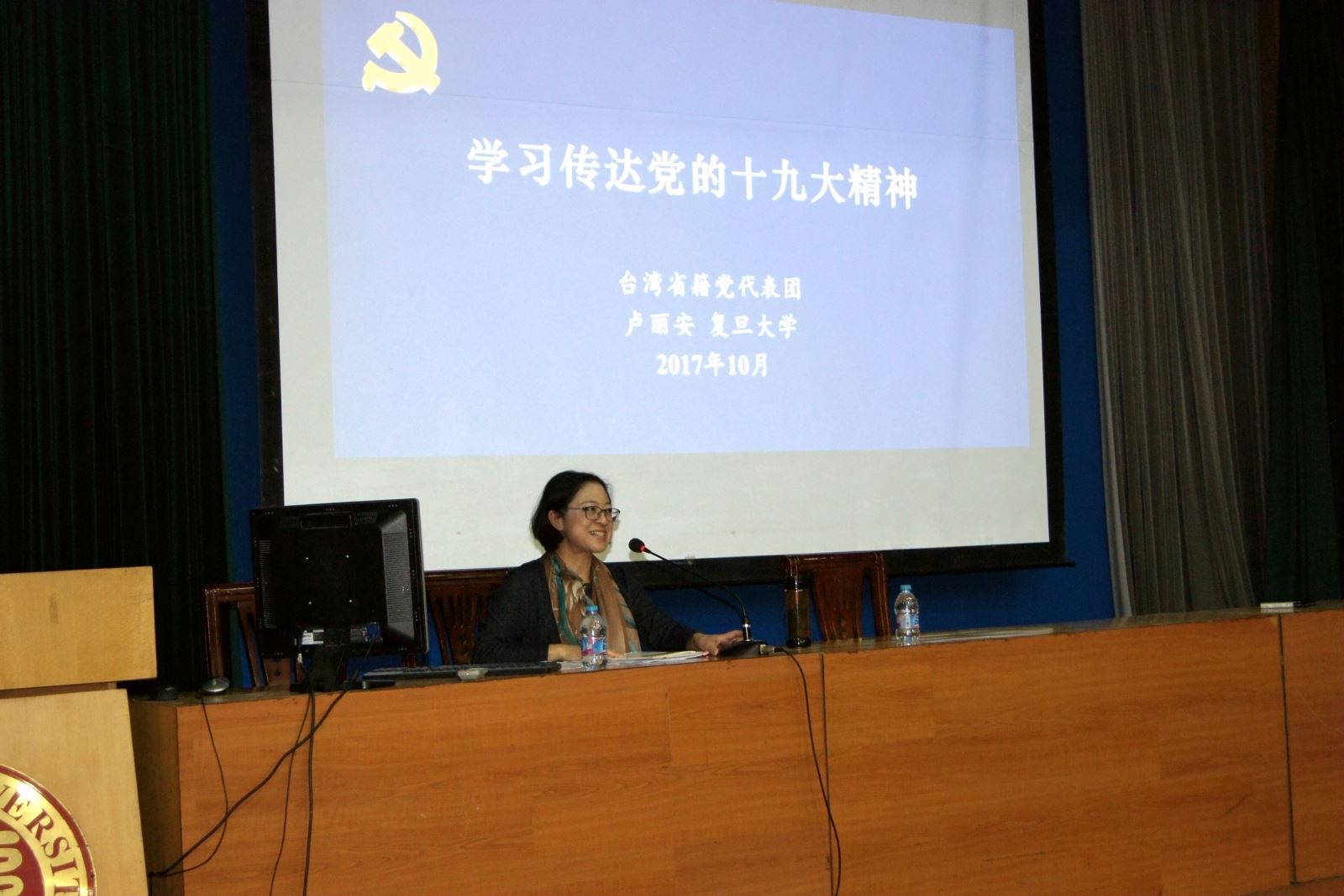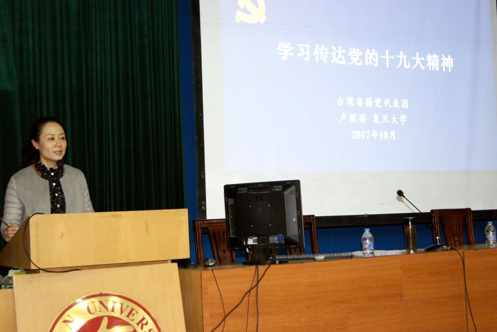 最后,卢丽安同志引用习近平总书记在党的十九大闭幕会上的重要讲话勉励大家,号召师生党员深入学习习近平新时代中国特色社会主义思想,从身边做起、聚众人之力,为两岸发展和祖国统一,为一流大学建设和教育事业发展贡献自己的力量 。