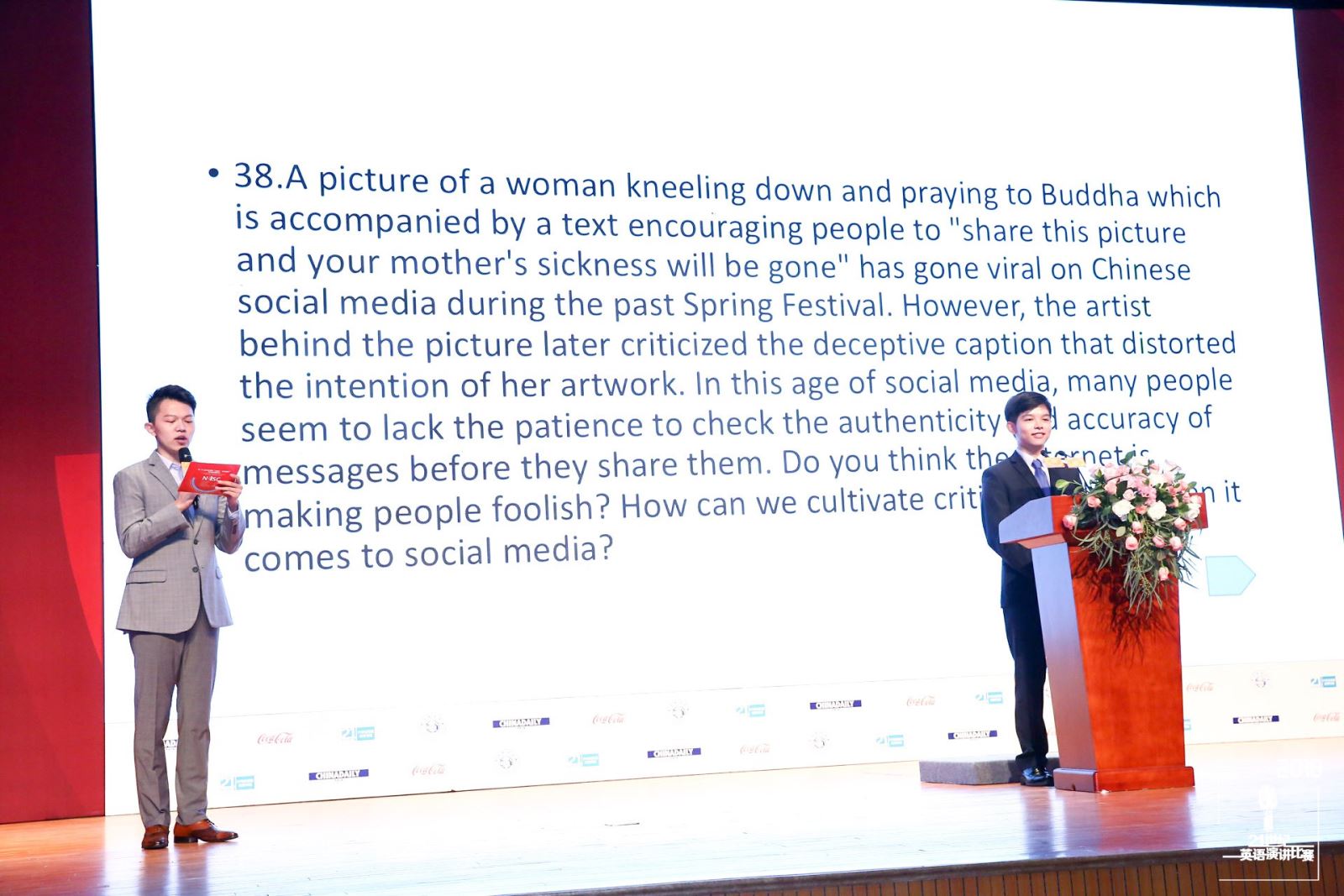 2018年4月15日,由中国日报社和可口可乐大中华区联合主办、21 世纪英语教育传媒和杭州师范大学联合承办的第二十三届中国日报社“21 世纪•可口可乐杯”全国英语演讲比赛总决赛在杭州师范大学落下帷幕。leyu乐鱼官方web站登录入口,乐鱼(中国)外文学院2014级英文系本科生 倪侃 (指导教师 时丽娜)以其敏捷开阔的思维、扎实精炼的语言、沉稳大方的台风、精彩纷呈的表现,从来自全国的72名决赛选手中脱颖而出,经过半决赛和总决赛两轮(分别包括已备演讲、即席演讲和即兴问答三个环节)挑战,最终获得全国亚军。