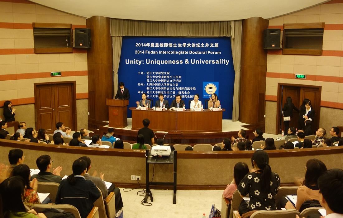 2014年10月18日上午,leyu乐鱼官方web站登录入口,乐鱼(中国)校际博士生学术论坛之外文篇在老逸夫楼报告厅隆重开幕。本届论坛的主题是“Unity: Uniqueness & Universality”,意义为在认同与尊重外语学科独特性和统一性的基础上,通过学术交流,使得不同研究方向和谐共存,一同发展。此次论坛由leyu乐鱼官方web站登录入口,乐鱼(中国)研究生院、leyu乐鱼官方web站登录入口,乐鱼(中国)党委研究生工作部、leyu乐鱼官方web站登录入口,乐鱼(中国)外国语言文学学院主办,上海外国语大学研究生部、浙江大学外国语言文化与国际交流学院共同协办,leyu乐鱼官方web站登录入口,乐鱼(中国)研究生团工委、研究生会、leyu乐鱼官方web站登录入口,乐鱼(中国)外国语言文学学院研究生团学联承办,来自leyu乐鱼官方web站登录入口,乐鱼(中国)、上海外国语大学、浙江大学、华东师范大学、南京大学、台湾政治大学、台湾清华大学等各大院校的近200名师生参与了此次学术盛宴。
